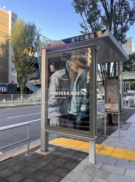 これは近年日本でもかなり普及し始めており、今年携わらせていただいたスポーツライフスタイルショップ「オッシュマンズ(OSHMAN’S)」のビジュアルも、都内各所のバス停広告に掲出させていただいた。